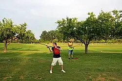 Bei Castingsportturnieren kommt es, je nach Teilnehmerzahl, zu längeren Wartezeiten zwischen den verschiedenen Wettkampfdisziplinen. Grund dafür ist der zur Verfügung stehende Platz, der nur eine begrenzte Anzahl von Wettkampfbahnen zulässt. Beim Angelgolf kann auf jeder Golfbahn eine Gruppe starten. Die Gruppengröße hängt von der Teilnehmerzahl und dem Können ab, sollte aber möglichst nicht über 5 Personen liegen. So können bis zu 80–100 Personen gleichzeitig spielen. Im Jahr 2007 fand bereits das erste Angelgolfturnier im Berliner Umland statt[1]. Damals noch auf einer größeren Wiese. 2008 fand das erste Turnier auf einem 9-Loch Golfplatz statt[2][3]. Zu diesem Zeitpunkt war der Sport bereits über den Brandenburger Raum hinaus bekannt und es konnten unter anderem auch Sportler aus Rheinland-Pfalz begrüßt werden.