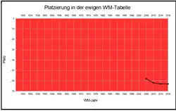| 3 WM-Spiele 0 Siege 2 Unentschieden 1 Niederlage 1:2 Tore | |
