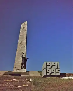 Das Denkmal auf der Anhöhe wurde im Russisch-Ukrainischen Krieg zerstört. Alice Bota besuchte die Anhöhe im Oktober 2014 zusammen mit dem Fotografen Sebastian Bolesch und berichtete in der Wochenzeitung Die Zeit von der Beerdigung dreier im Kampf gegen die ukrainische Armee gefallener prorussischer Separatisten auf der Anhöhe.[1]
