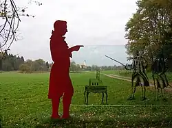 Das Mozart-Denkmal im Anhauser Tal markiert den Mozart-Rundweg, der auch durch Anhausen führt. Der Komponist Wolfgang Amadeus Mozart war selbst nicht in Anhausen, aber sein Ur-Großonkel hat an der Errichtung der Kirche St. Adelgundis mitgewirkt.