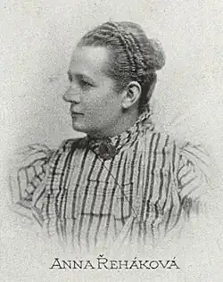 Anna Řeháková besuchte das Lehrerseminar zu St. Anna in Prag. Sie war vermutlich die erste Lehrerin, die die Lehramtsprüfung in tschechischer Sprache ablegte.[1] Sie unterrichtete zunächst in Čáslav und ab 1874 in Prag an der Volksschule für Mädchen bei St. Thomas, wo auch ihre ältere Schwester Elisabeth Řeháková tätig war.