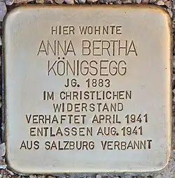 - In Pforzheim trägt das Heilpädagogische Zentrum Anna-Bertha-Königsegg Schule den Namen der Widerstandskämpferin.