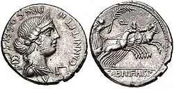 - ↑ Michael Crawford: Roman Republican Coinage. Cambridge 1974, Nr. 366/1b.