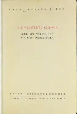 - Anna Grosser-Rilke: Nie verwehte Klänge. Lebenserinnerungen aus acht Jahrzehnten. Beyer, Leipzig 1937.[3]