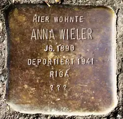 - ↑ a b Wieler, Anna. In: Gedenkbuch Opfer der Verfolgung der Juden unter der nationalsozialistischen Gewaltherrschaft in Deutschland 1933–1945, auf: bundesarchiv.de.