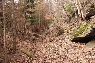 Erhaltener Abschnitt des Annaberger Floßgrabens unterhalb des Schlosssteins | ||