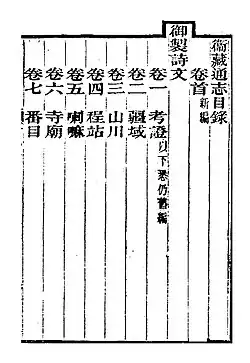 - ↑ Mit Aufzeichnung der zehn Perfektionen (Shiquan ji 十全记), sind die Zehn siegreichen Feldzüge bzw. Zehn vollständigen militärischen Siege (chinesisch 十全武功, Pinyin Shiquan wugong, englisch Ten Complete Military Victories / Ten Great Campaigns) gemeint, ein Oberbegriff für die Zehn großen Feldzüge in der Ära des Kaisers Qianlong (reg. 1735–1795) der Qing-Dynastie im chinesischen Kaiserreich der Mandschu.