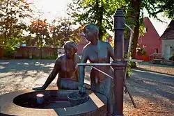 - 1991 – Brunnengeflüster – Dorfbrunnen, Figurengruppe, Bronze lebensgroß, Saerbeck