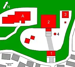 Im Westen befindet sich das Abt- und Mönchsquartier (A).