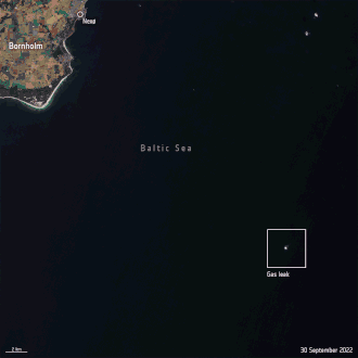Vorher-Nachher-Vergleich des Lecks durch Fotos des Satelliten Sentinel-2 (30. September 2022 und 3. Oktober 2022)
