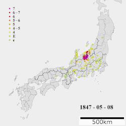 | Hietsu-Erdbeben 1858 | 飛越地震[8] | 9. Apr. 1858[9] | 7.0 | 426 |
