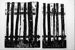 Kiefers frühe Landschaftsbilder sind gleichfalls mit Geschichte aufgeladen. Sie sind kontaminiert mit dem vom Nationalsozialismus propagierten „deutschen Sehen“.[71] Sein erstes großes Landschaftsbild: Märkische Heide entstand 1971. Dessen Sujet wandelte er in den darauf folgenden Jahren in unterschiedlichen Formaten häufig ab.[72] Die Märkische Heide ist die Heidelandschaft zwischen Spreewald und dem Südosten Berlins in der Mark Brandenburg. Sie symbolisiert hier einen geschichtsträchtigen Ort mit den Wurzeln Preußens.