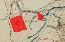 Das Gebäude liegt im weiteren Bereich des ehemaligen Burgstalls, der sich auf dem Urkataster von Bayern 220 m weiter westlich erstreckt hat. Hier lag in einem 14 m breiten Ringgraben ein annähernd runder Burgbereich mit einem Durchmesser von etwa 40 m, im Süden befand sich eine Vorburg mit Wirtschaftsgebäuden. Die ehemaligen Gräben zeichnen sich noch deutlich als flache Mulden bzw. als Bodenwelle im Gelände ab. Im Bereich des Kernwerks und der Wirtschaftshofs sind schwache Erhebungen zu erkennen, wobei der Ziegelschutt durch einen trockenen Bewuchs überdeckt wird.