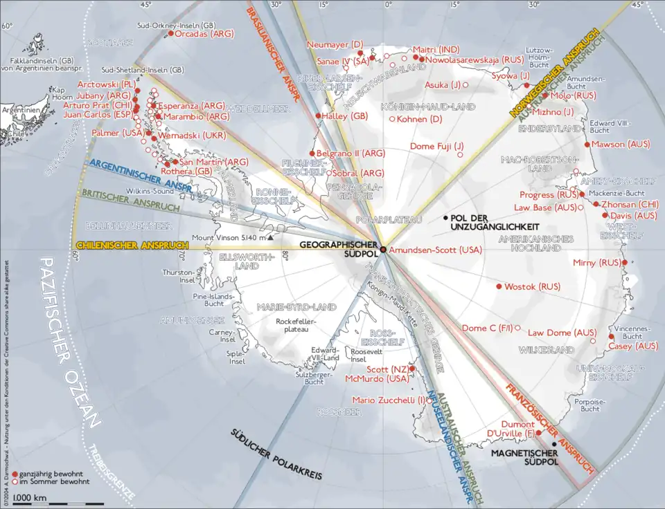 Antarktika ist kein eigener Staat. Verschiedene Nationen haben Gebietsansprüche erhoben, die sich zum Teil überschneiden. Derzeit erheben sieben Nationen Ansprüche auf acht Territorien in Antarktika:
