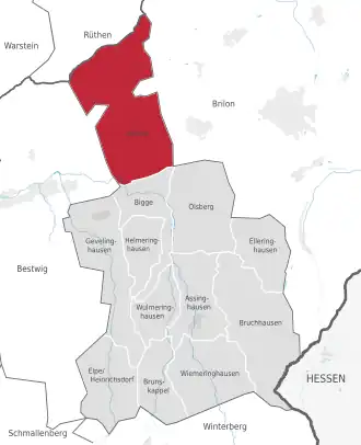 - ↑ Josef Rüther: Geschichte des Landkreises Brilon. Regensbergverlag, Münster 1957, S. 365.