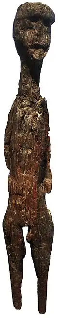In Irland fand man ein hölzernes Kultbild bei Ralaghan (County Cavan), das ursprünglich in die Eisenzeit, nach neueren Forschungen aber in die späte Bronzezeit datiert wurde.[20] Bei Bodenarbeiten wurde 1880 in der Nähe von Ballachulish in Schottland eine fast lebensgroße weibliche Figur gefunden. Die Figur war aus einem Eichenstamm geschnitzt, mit deutlicher Ausprägung des Schambereichs, besonderes Merkmal sind Quarzitsteine, die als Augen eingesetzt wurden. Die weiteren Untersuchungen ergaben, dass man die Figur in einer rituellen Beisetzung deponierte. Die Figur war zusammen mit anderen Fundstücken innerhalb einer Einhegung aus Rutenpflechtwerk deponiert worden, analog zu Fundsituationen auf dem Kontinent. Die Datierung nach der Radiokarbonmethode ergab einen Deponierungszeitraum der Figur von 700 bis 500 v. Chr.[21] Ein weiterer Beleg für anthropomorphe Idole im Keltikum ist der Fund einer vermutlich männlichen, hölzernen 58 cm hohen Figur beim zentralfranzösischen Ort Montbouy, westlich von Orléans im Département Loiret. Die Figur gilt als eine Weihestatue, da sie in einem Brunnen eines kaiserzeitlichen Tempelbezirks gefunden wurde.[22][23]