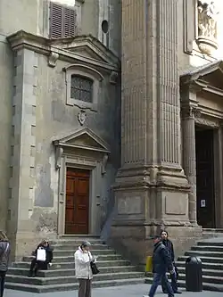 Die Tür zwischen der Kapelle und der eigentlichen Kirche hat einen einzigartigen Architrav, der mit einem Fledermausflügel-Tympanon verziert ist, eine Hommage Nigettis an Buontalenti.