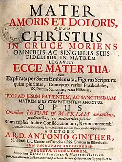 - Anton Ginther: Mater amoris et doloris, quam Christus in cruce moriens omnibus ac singulis suis fidelibus in matrem legavit: ecce mater tua. Martin Veith, Augsburg 1743, ed. 3 bei Google Book Search