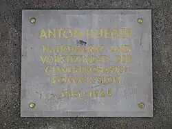 - ↑ www.oegb.at - Ehrengrab von Anton Hueber enthüllt. Ehemals im (nicht mehr online verfügbar); abgerufen am 28. März 2018 (österreichisches Deutsch). (Seite nicht mehr abrufbar. Suche in Webarchiven)
