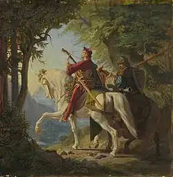 - Minnesänger mit seinem Knappen, Öl auf Holz (Sammlung Schack, München)