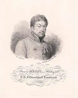 Während der Befreiungskriege erhielt er eine Division im Korps Klenau. Er kämpfte in der Schlacht bei Leipzig und bei der Blockade von Dresden. Er kam danach nach Italien, wo er in der Schlacht am Mincio kämpfte und dann die Blockade von Mantua und Legnago leitete. Anschließend wurde er Kommandant der Festung Mantua.[1]