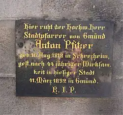 - In der zweiten südlichen Chorkapelle des Heilig-Kreuz-Münsters erinnert eine Gedenktafel an Anton Pfitzer.[3]