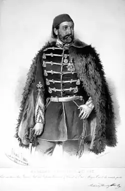 Nach Ostern 1854 war er mit Ismael Pascha an der Vertreibung der Russen aus Craiova beteiligt und lagerte mit 5000 Mann hinter der Schil. Am 22. Mai war er in einem Gefecht in Turnu verwickelt.[20][21] Ende Mai führte er 1100 Mann siegreich bei Calafat in ein Gefecht mit 700 russischen Husaren unter Andrei Nikolaevich Karamzin.[22] Karamzin (* 1814), Sohn von Nikolai Michailowitsch Karamsin und zweiter Ehemann von Aurora Karamzin,[23] starb an den Folgen der Verletzungen. Iskender Bey erbeutete alle vier beteiligten russischen Geschütze sowie 40 Pferde und machte 27 Gefangene.[22] Dieser Erfolge brachte den Korpskommandanten Salim Pascha dazu, ihn für den Rang eines Mirliva oder Brigadegeneral (Generalmajor) sowie für das Kommando über die 40 in Rumelien befindlichen Başı Bozuks vorzuschlagen.[9]