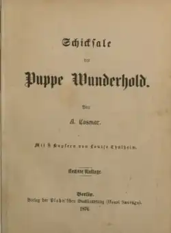 - ↑ Antonie Cosmar: Schicksale der Puppe Wunderhold. In: Hubert Göbels: Hundert alte Kinderbücher aus dem 19. Jahrhundert: Eine illustrierte Bibliographie. Band 2. Harenberg, Dortmund 1979.