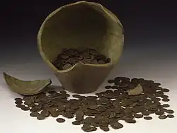Im April 2003 wurde von einem Sondengänger auf einer landwirtschaftlichen Nutzfläche nahe dem Ort Chalgrove in Oxfordshire, etwa 16 Kilometer südöstlich von Oxford, ein unberührter römischer Münzschatz gefunden. Der Schatz befand sich in einem kaum beschädigten Krug aus grauem Steinzeug von 20,5 Zentimeter Durchmesser und bestand aus 4957 Antoninianen. Dem Treasure Act 1996 entsprechend musste der Fund einem Museum angeboten werden. Die durch Korrosionsprodukte zusammengebackenen Münzen wurden im British Museum aufwändig gereinigt und von Richard Abdy wissenschaftlich bearbeitet. Später wurde der gesamte Schatz vom Ashmolean Museum in Oxford erworben. Der Fundort des als Chalgrove II bezeichneten Schatzes befindet sich weniger als 35 Meter von dem Fundort des 1989 von demselben Sondengänger gefundenen Münzschatzes Chalgrove I entfernt. Dieser erste Münzschatz umfasste 4145 Antoniniane in zwei schwarz glasierten Keramikgefäßen. Die Zusammensetzung der beiden Depots und die Lage ihrer Fundorte deuten darauf hin, dass sie von einem Besitzer stammen und aus Sicherheitsgründen getrennt angelegt wurden.[1][10]