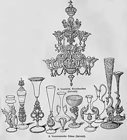 Salviati bemühte sich, traditionelles Fachwissen in moderne Fertigungsverfahren einzubringen. Die ersten Erfolge hatten ihn ermutigt, auch venezianische Glasgefäße des 16. und 17. Jahrhunderts zu imitieren und damit bewusst wieder an die Glaskunst der Renaissance mit ihren dünnwandigen Flügelgläsern, Faden- und Netzgläsern (reticella) anzuknüpfen. In der Vergangenheit hatte sich die Herstellung von Kunstglas vornehmlich auf teure Einzelstücke beschränkt. Salviati war einer der ersten italienischen Fabrikanten, der hauptsächlich für den Export gedachte Glaserzeugnisse in großer Stückzahl produzierte und dafür eine beträchtliche Anzahl qualifizierter Facharbeiter beschäftigte. Die Entwürfe aus Salviatis Unternehmen waren im 19. Jahrhundert auf vielen Ausstellungen vertreten und wurden vor allem in Großbritannien zur Zeit Königin Viktorias populär.