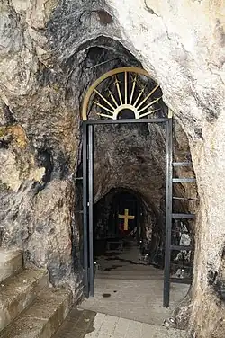 Das Kloster liegt auf einer rund 300 m ü. A. hohen Geländeterrasse über einer Felswand. Im Karst des Felsens befindet sich eine kleine Höhle, die dem heiligen Blasius von Sebaste gewidmet ist. Gemäß lokaler Überlieferung soll der Heilige in der Höhle gelebt und später in Durrës den Märtyrertod erduldet haben.[1] Der Name Sebaste[Anmerkung 1] wurde auf die ganze Gegend einschließlich der Festung auf dem nächsten Hügel, genutzt im 6. und 7. Jahrhundert,[2] übertragen. Die Höhle ist als nationales Naturdenkmal geschützt.[3]