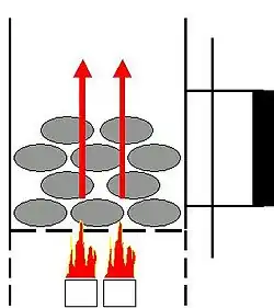 Durch den Kamineffekt werden die Flammen der Anzünder und die heißen Gase durch die gelochte Auflage nach oben in den Anzündkamin gesaugt. Das Brennmaterial fängt schnell an zu glühen, und zwar von unten nach oben. Auch nach Ausbrennen der Grillanzünder oder des Papiers unter dem Anzündkamin glühen die Kohleschichten weiter nach oben hin durch.