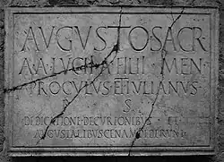 Leicht mit zufälligen Schrammen zu verwechseln: Apices auf einer Inschrift vom Schrein der Augustales in Herculaneum, beispielsweise in AUGUSTÓ.