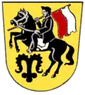 Die Beschreibung des Wappens der ehemaligen Gemeinde lautet: „Auf goldenem Grund der Rieser Bauernkönig mit einer von Silber und Rot geteilten Fahne auf springendem Pferd. Unter den Vorderhufen des Pferdes freischwebend ein schwarzes Widdergehörn.“[4]