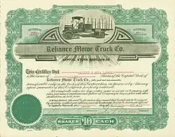 Es bestand keine Verbindung zur gleichnamigen Reliance Motor Truck Company, die einige Jahre vorher im Bundesstaat Michigan existierte.[1][2]