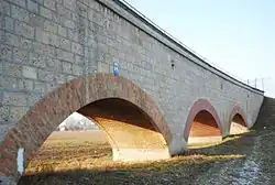 Errichtet wurde diese Talübersetzung mit einer leichten S-Form im Bereich der offenstehenden Strecke aus Stein, der mit Quadern verkleidet wurde. Die übrigen Pfeiler wurden aus Bruchsteinmauerwerk erbaut. Die Gewölbe bestehen aus Ziegeln und wurden mit Quadereinfassungen versehen.