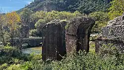 Am südlichen Dorfeingang findet sich beidseits der Nationalstraße eine weitere Säulenreihe. Dem Gelände folgend, hatten diese Pfeiler wiederum unterschiedliche Höhen. Teilweise sind sie noch recht gut erhalten.[6]:37 Es stehen noch 13 Brückenpfeiler; weitere Pfeiler mussten beim Bau der Nationalstraße abgetragen werden.[15] Auch hier gab es eine zweite, parallele Brücke. Von ihr sind aber nur noch Fundamente der Pfeiler erhalten. Vielleicht wurde die neue Brücke in einer späteren Restaurationsphase errichtet.[4]:63 ff