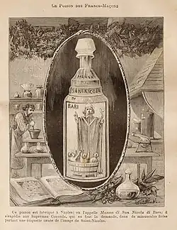 Die Fläschchen wurden zur Tarnung mit „Manna di San Nicola di Bari“ beschriftet. Dies war damals ein beliebtes Heilöl zur Behandlung von Akne, das angeblich in der Basilika San Nicola in Bari von den Knochen des heiligen Nikolaus von Myra tropfte und aufgefangen wurde.[2]