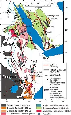- ↑ a b H. Fritz, M. Abdelsalam, K.A. Ali, B. Bingen, A.S. Collins, A.R. Fowler, W. Ghebreab, C.A. Hauzenberger, P.R. Johnson, T.M. Kusky, P. Macey, S. Muhongo, R.J. Stern, G. Viola: "Orogen styles in the East African Orogen: A review of the Neoproterozoic to Cambrian tectonic evolution" doi:10.1016/j.jafrearsci.2013.06.004
