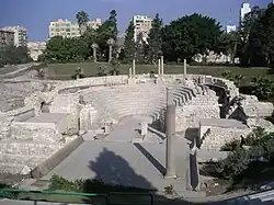 Er schlug stattdessen vor, einen zentralen Platz für eine neue Hauptstadt zu suchen, der von Arabien nicht durch eine Wasserbarriere getrennt war.[31] Gemäß dem Vertrag mit Kyros von Alexandria wurde der Besitz der ägyptischen Alexandrier verschont, während der der Griechen als Beute verteilt wurde. Griechischen Einwohnern wurde die Wahl gelassen, in oströmisches Gebiet ohne ihren Besitz zurückzukehren oder in Alexandria zu bleiben und Dschizya zu zahlen.
