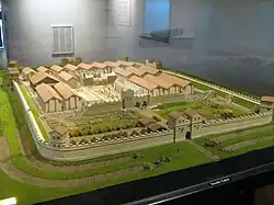 Die Reiter wurden unter Septimius Severus durch eine 1000 Mann starke Infanterieeinheit abgelöst die hierfür wahrscheinlich aus dem Kastell Cramond am Firth of Forth abgezogen wurde. Die Anwesenheit der Gallier in Arbeia wird durch einen Weihestein und die Bauinschrift eines Aquäduktes bestätigt, die 1985 entdeckt wurde. Normalerweise beanspruchte eine cohors milliara ungefähr zehn Kasernenblöcke als Unterkunft, es scheint, dass die tatsächliche Mannschaftsstärke der Gallierkohorte aber nur etwas weniger als die Hälfte betrug, rund vier Zenturien dürften weiterhin in Cramond verblieben sein. Man nimmt an, dass der Rest als Eskorte für die Bewachung der Nachschubtransporte zwischen South Shields und Cramond verwendet wurde.[12][13] |