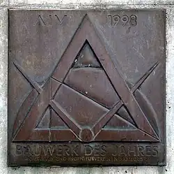 Plakette „Bauwerk des Jahres“ an der „Wohnbebauung Turmweg“ in Rotherbaum, vergeben 1998