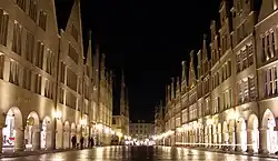 Die Münsteraner Innenstadt um den Prinzipalmarkt wurde nach dem Zweiten Weltkrieg gegenüber dem Vorkriegszustand in stark veränderter Form wieder aufgebaut. Der Wiederaufbau erfolgte allerdings auf den alten Parzellen und unter Verwendung der ursprünglichen Materialien und Gestaltelemente. Neben den Flächenbombardements des Zweiten Weltkriegs führten autogerechte Stadt- und Verkehrsplanungen, Prozesse der Tertiärisierung und die in den 1970er Jahren durchgeführten Flächensanierungen zu weiteren starken Verlusten historischer Bausubstanz. Insbesondere die Altstädte in den Metropolen, etwa die Düsseldorfer Altstadt oder die Kölner Altstadt, unterlagen diesen tiefgreifenden Veränderungen, sowie auch die Innenstadt von Bochum, in welcher bis weit in die 1970er Jahre zahlreiche, erhaltene Altbauten Verkehrsflächen weichen mussten. Sie stellen sich heute weitgehend als Einkaufs- und Amüsierviertel dar.