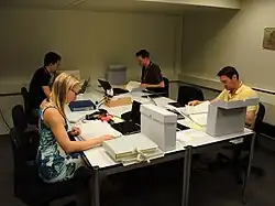 Die erste Forscherin, die 1997 von dieser neuen Transparenz profitierte, war die britische Schriftstellerin und Menschenrechtsaktivistin Caroline Moorehead, die an einer offiziellen Chronik des IKRK arbeitete.[23] Ihr folgte bald der französische Historiker Serge Klarsfeld mit seiner Organisation "Vereinigung der Söhne und Töchter aus Frankreich deportierter Juden". Zwei Jahre später veröffentlichte er eine Sammlung von Dokumenten aus dem Archiv über die Internierung und Deportation französischer Juden während des Zweiten Weltkrieges.[24]