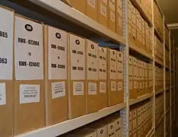 - 19 laufende Kilometer an Regalen mit Papierdokumenten,