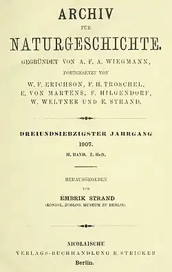 - ↑ Arend Joachim Friedrich Wiegmann: Prospectus, in: Archiv für Naturgeschichte, 1. Jahrgang, 1. Band, unpaginierte Vorseiten; 1835 (Digitalisat in Biodiversity Heritage Library)