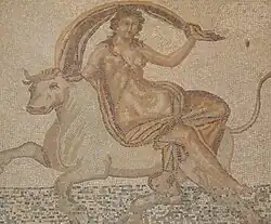 In der Trinquetaille wurden zwischen 1982 und 1984 Teile eines großen, sehr reich ausgestatteten Gebäudes ausgegraben, das wahrscheinlich vom Ende des ersten Jahrhunderts bis in das sechste Jahrhundert n. Chr. bewohnt war. Ein großer Teil der Räume war mit Mosaiken ausgestattet. Es fanden sich steinerne Bauornamentik (z. B. ein korinthisches Kapitell) und Fragmente von Marmorstatuen. Es konnten mehrere Bauphasen unterschieden werden. Bemerkenswert ist ein gut erhaltenes Mosaik (7,60 m × 7,70 m), das im Zentrum den sitzenden Äon mit den Tierkreiszeichen (als Reif) zeigt.[14] Um dieses Mittelfeld herum findet man Eroten in den Eckfeldern, sowie Nereiden auf Meerestieren.[15]