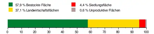 Es besteht zu 57,9 % aus bestockter Fläche, zu 37,1 % aus Landwirtschaftsfläche, zu 4,4 % aus Siedlungsfläche und zu 0,6 % aus unproduktiven Flächen.