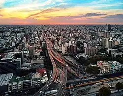 Im Jahr 2023 lebten 93 Prozent der Einwohner Argentiniens in Städten.[11] Buenos Aires, dessen Ballungsraum 2017 etwa 14,9 Millionen Einwohner umfasst, ist politische Hauptstadt und wirtschaftliches Zentrum Argentiniens. Es ist umgeben von einer Reihe von selbstständigen Vorstädten, die zum Teil reine Schlafstädte sind, zum Teil aber auch selbst über Produktionsstätten verfügen. Córdoba, mit 1,6 Mio. Einwohnern die zweitgrößte Stadt des Landes, verfügt über größere Produktionsstätten und beherbergt die älteste Universität des Landes Universidad Nacional de Córdoba. Rosario in der Provinz Santa Fe (1,3 Mio. Einwohner) ist der zweitgrößte Hafen des Landes und ein Industrie- und Handelszentrum. Mendoza (1 Mio. Einwohner) ist vor allem für seinen Wein- und Obstanbau bekannt, dient aber auch als Brückenkopf für den Handel mit Santiago de Chile. San Miguel de Tucumán (883.000 Einwohner) ist die Geburtsstätte der Unabhängigkeit und wurde durch die intensive Landwirtschaft, insbesondere den Zuckerrohranbau, wirtschaftlich und kulturell bedeutsam, litt aber in den letzten Jahrzehnten unter der Krise in diesem Wirtschaftssektor und ist heute eine der Städte mit der größten Armutsquote des Landes. Die Universitäten in dieser Stadt haben allerdings überregionale Bedeutung und werden z. B. von Studenten aus Bolivien besucht.