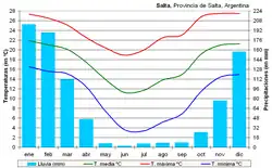 Der Nordwesten Argentiniens ist im Bereich der Anden trocken mit einer kurzen Regenzeit im Sommer. In ihr findet man die Hochwüste Puna, deren Westen zu den regenärmsten Gebieten der Welt zählt, sowie den halbwüstenartigen, unfruchtbaren Monte am Fuß der Anden in den Provinzen Mendoza, San Juan und La Rioja.